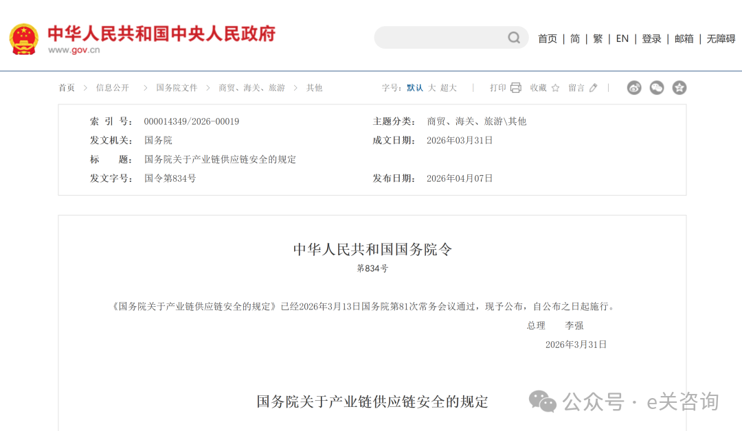 国务院关于产业链供应链安全的规定