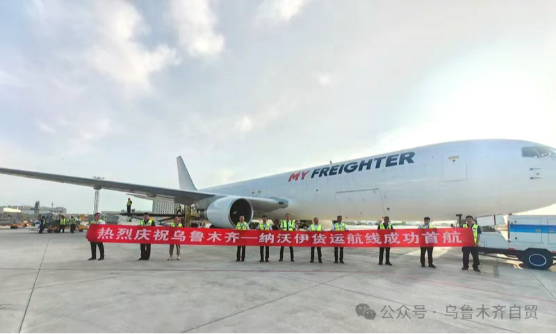 当天,一架满载跨境电商包裹的国际货运航班从乌鲁木齐飞往乌兹别克斯坦纳沃伊机场。该航线由乌兹别克斯坦中亚航空公司运营,机型B767—300F,本次航班载运出口货物52.32吨,后期计划每周执飞2班。