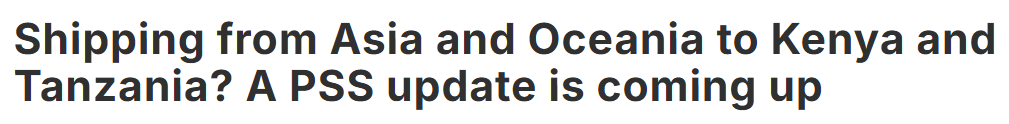近日,赫伯罗特通知,针对从亚洲和大洋洲运往肯尼亚蒙巴萨港和坦桑尼亚达累斯萨拉姆港的货物,一项新的旺季附加费(PSS)调整即将生效。