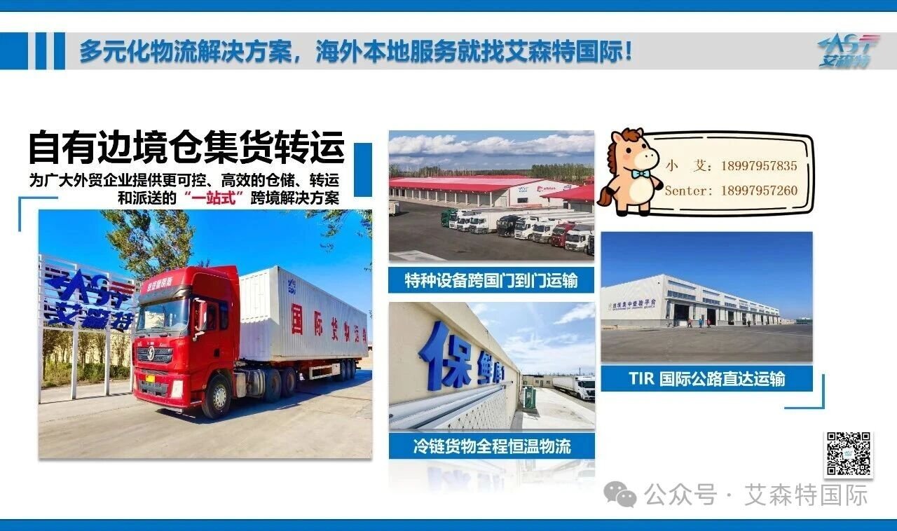 业务推介:艾森特国际拥有多语种业务团队、自有关务团队、境外驻哈萨克斯坦分公司和中亚各国战略合作伙伴等,实现本地化专业操作团队在换装、转运、派送全境等,全程无缝衔接,高效通关,时效稳定,安全有保障。