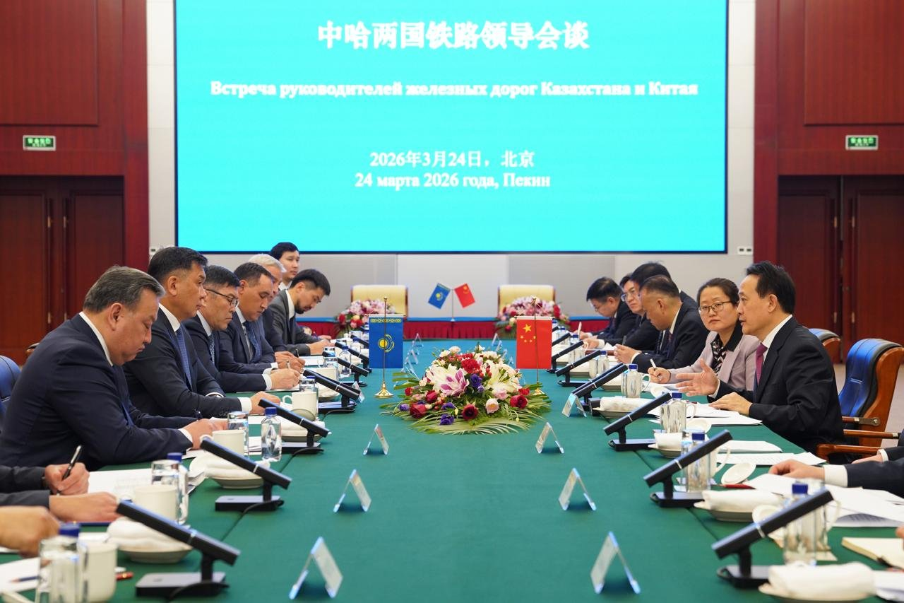 哈萨克斯坦国家铁路公司消息,哈铁公司董事长塔尔加特·阿尔德别尔格诺夫近日在北京与中国国家铁路集团有限公司董事长郭竹学举行会谈。